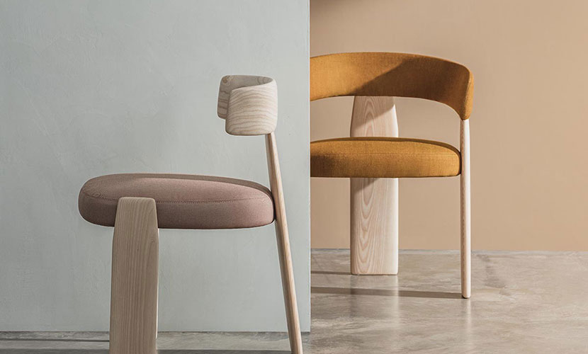 THE CONRAN SHOP(ザ・コンランショップ) のオリジナルコレクションであり、ふっくらとしたファブリックシートと三本脚が特徴のダイニングチェアです。