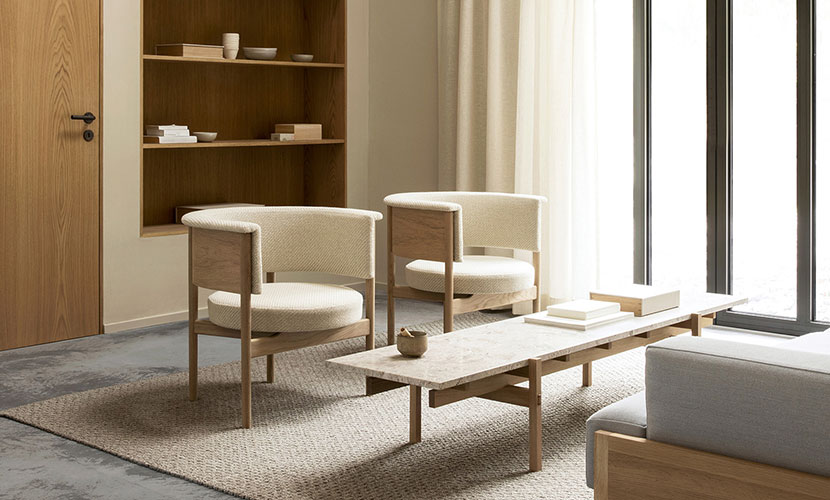 日本を代表するカリモク家具のライフスタイルブランド「KARIMOKU CASE」で、デンマークのデザインスタジオNorm Architectsがデザインしたコレクション N-CC01。木と布が織りなす静かな美しさを体現したこちらの1脚は、深く腰を預けられるリラックス感を生み出します。